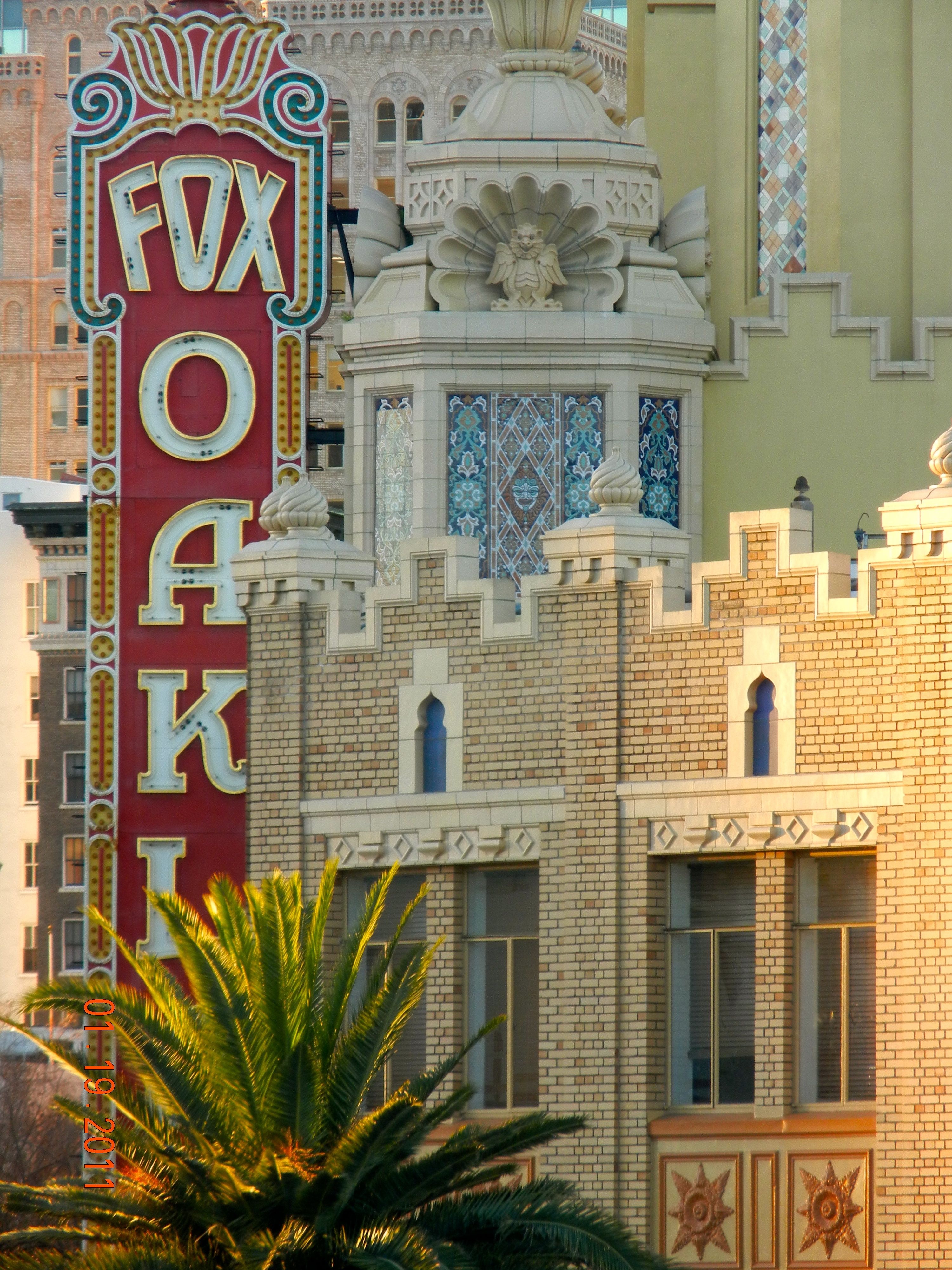 Yes indeed – here in our uptown Oakland apartment, we do actually have a side yard – the mostly-empty block between our building and the amazing art-deco Fox Oakland Theater.