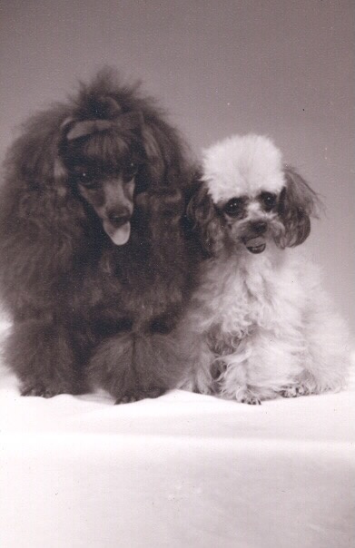 This is the photo we used for your birth annoucement! Noel was given to my parents as a gift – they passed him along to me and Phil soon after we were living in Texas before you were born. We found Holly when we moved to Texas and they were our “children”! They were both pure-bred poodles – the woman who gave Noel to my parents raised show-dog poodles, and something about Noel’s teeth disqualified him for show, but we kept his show-dog grooming style for quite a while. This photo was taken by Phil for the birth announcement!